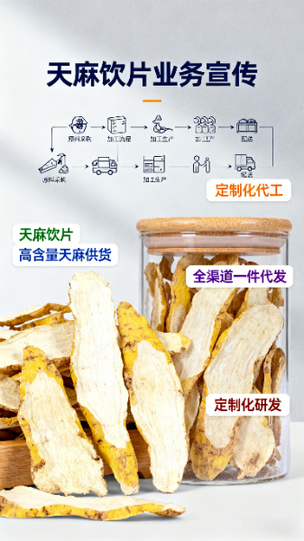 典型场景:为饮料厂定制水溶性天麻提取物,为烘焙品牌定制天麻风味粉,为休闲食品企业定制即食天麻切片;